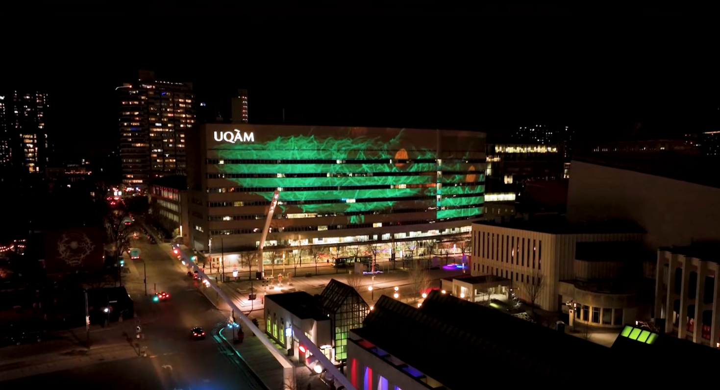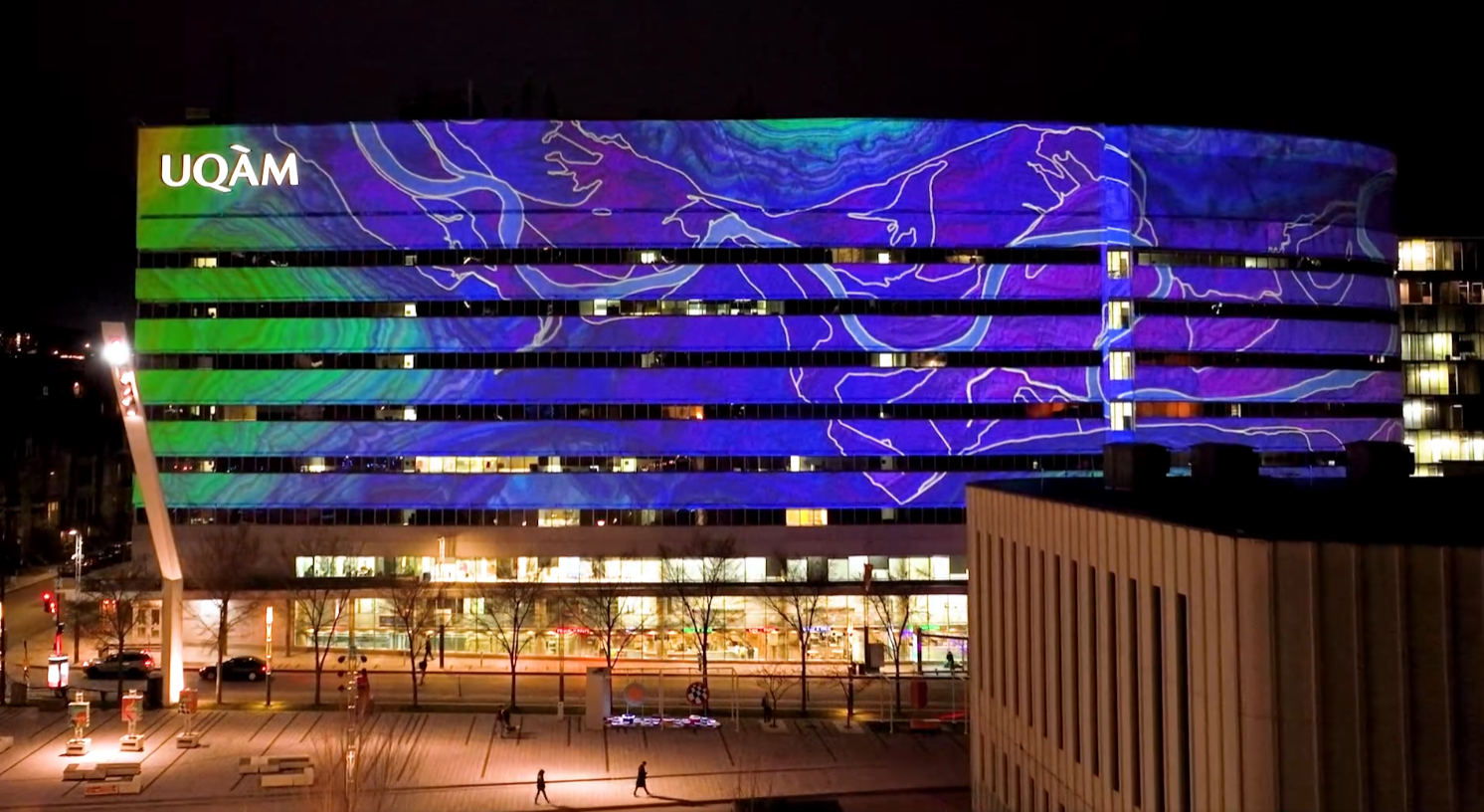 est une œuvre vidéo projetée sur la façade du pavillon Président-Kennedy de l’UQAM pour le 100e anniversaire de l’Acfas.